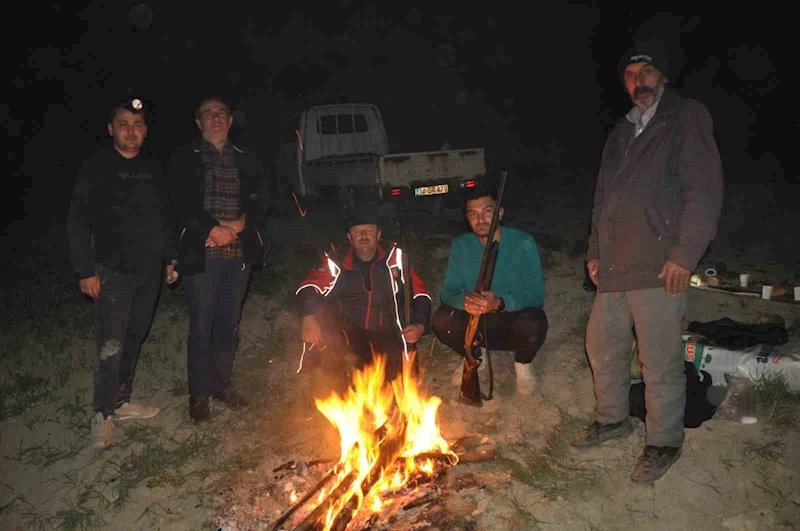 Bolu’da ekili arazilerini domuz sürülerinden korumak isteyen çiftçiler, ellerindeki tüfeklerle sabahlara kadar ateş yakarak nöbet tutuyor.