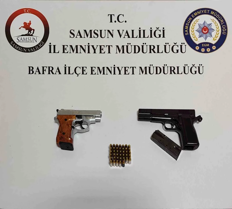 Bafra İlçe Emniyet Müdürlüğü ekipleri, A.Ç. isimli şahsın, husumetlisi T.K.’yı "Seni silahla vururum" şeklinde tehdit etmesi üzerine çalışma başlatıldı. A.Ç.’nin ikametinde yapılan aramada 1 adet tabanca, 40 adet fişek, 1 adet kurusıkı tabanca ele geçirildi. Gözaltına alınan A.Ç., emniyetteki işlemlerinin ardından adli mercilere sevk edildi.