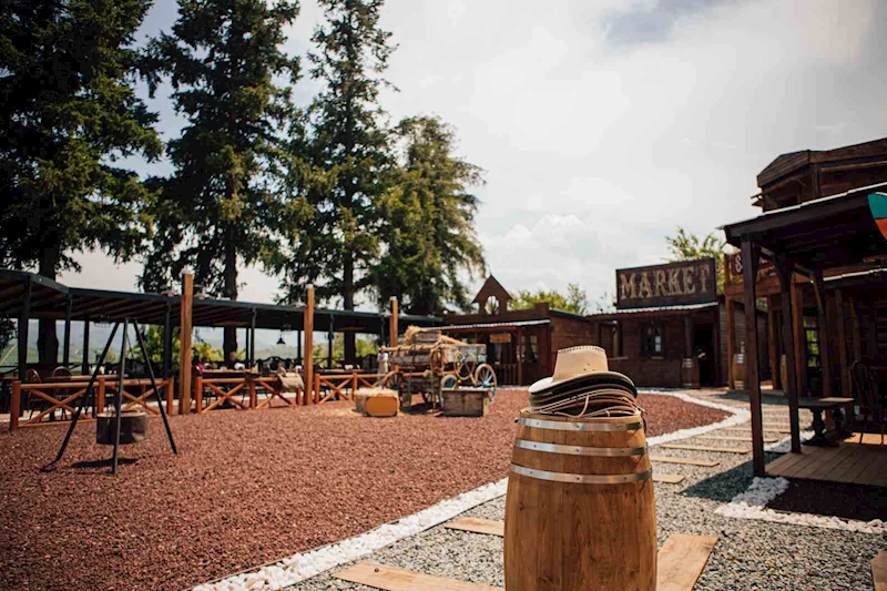 Çocukluk yıllarında izlediği kovboy filmlerindeki kasabaların görüntüsünden etkilenen Funda Alpak (42), yıllardır hayalini kurduğu işletmesini hayata geçirdi. Eskiden fındıklık olan bir bahçeye hayalini kurduğu kasabayı inşa eden kadın girişimci yoğun ilgiyle karşılaştı. Yerli ve yabancı turistlerin ilgisini çeken restoran işletmesinde fotoğraf alanı da oluşturan Alpak, müşterilerine kovboy şapkası da vererek hatıralarını ölümsüzleştirme imkanı da sağladı.