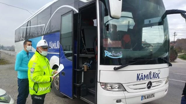 Uygulama çerçevesinde, durdurulan sürücülerin evrakları ve korona virüs tedbirleri denetlendi. Ekipler şehirler arası yolcu taşımacılığı yapan araçlara HES kodu listesi kontrolü, maske, sosyal mesafe ve dezenfektan denetimi gerçekleştirdi.