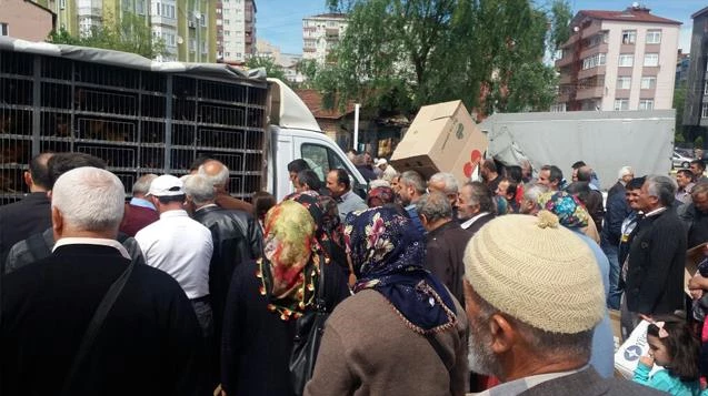 Ziraat odasının tavuk dağıtımı sırasında çiftçileri tavuklarını alabilmek için adeta birbirleriyle yarıştı.