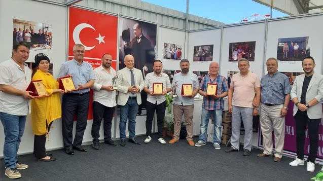 Esnaf ve Sanatkarlar Odası Başkanı Hayri Kandemir, fuara davet ettiği gurbetçiler Selim Akman, Hayriye Kökçam, Satılmış Bayram, Yalçın Doğan, Şahin Tabakoğlu ve Almanya Çaycumalılar Derneği Yönetim Kurulu Üyeleri'ne Perşembe Belediye Başkanı İsmail İnam ve TSO Yönetim Kurulu Üyesi Deniz Saraç eşliğinde plaket takdim etti.