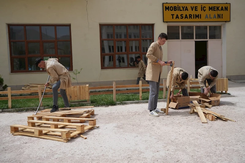 Paketlenmiş malzemeleri taşımakta kullanılan tahta paletleri atmayıp, geri dönüşüme kazandıran öğrenciler atölyede hem çalışıyorlar, hem de ürettikleri ürünler sonucunda gelir elde ediyorlar. Adeta bir fabrika gibi işlerin yürütüldüğü okulda, öğrenciler hem ekonomiye katkı sağlıyorlar, hem de cep harçlıklarını çıkarıyorlar.