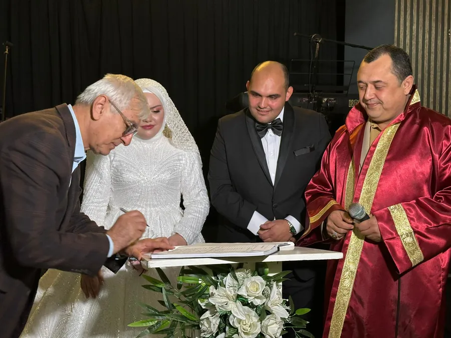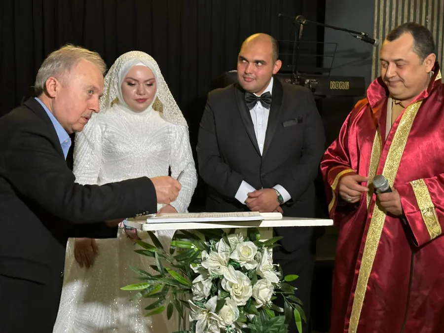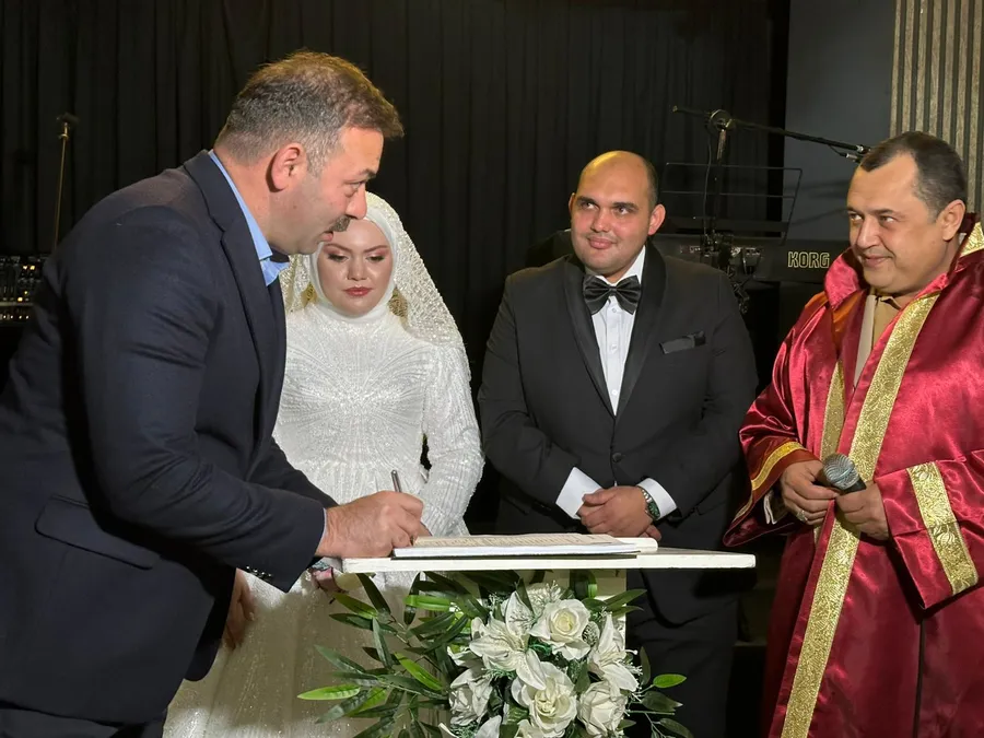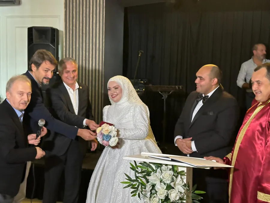 Ereğli Bağlık Düğün Salonu'nda yapılan nikah merasiminde çiftin nikahını Ereğli Belediyesi Nikah Memuru Tolga Tosunoğlu kıyarken; çiftin şahitliğini ise AK Parti Zonguldak Milletvekili Saffet Bozkurt, Cumhuriyet Halk Partisi (CHP) Zonguldak Milletvekili Eylem Ertuğ Ertuğrul, AK Parti önceki Dönem Milletvekili Hamdi Uçar, AK Parti İl Başkanı Mustafa Çağlayan, Karaelmas Gazeteciler Derneği (KGD) Başkanı Bahaddin Arı yaptı.