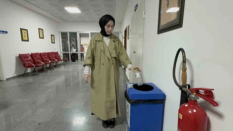 Düzce Üniversitesi Sınıf Öğretmenliği 4. sınıf öğrencisi Meryem Atik, projeye destek verdiklerini belirterek, “Sabah akşam yemekhanede yemek yiyoruz. Her yemekte 2 tane su alıyoruz ve pet şişelerimizi çöpe atıyoruz. Pet şişeler geri dönüşebilen bir madde olduğu için bunları çöpe atmak yerine her katta olan geri dönüşüm kutularımız var. Kapağını açıp buruşturarak kutuya atıyoruz” ifadelerini kullandı.