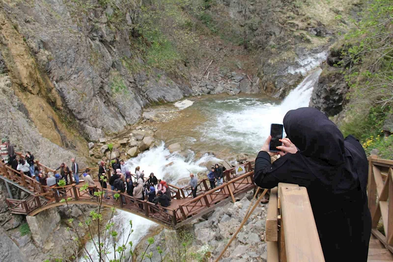 Giresun’daki Göksu Deresi’nde büyüklü küçüklü dört gölden oluşan Mavi Göl ve Göksu Travertenlerinin de içinde bulunduğu Kuzalan Tabiat Parkı’nda bayram tatili yoğunluğu devam ediyor.