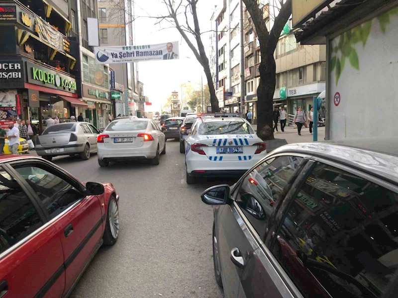 Zonguldak’ta iftara sayılı saatler kala vatandaşlar alışveriş yapmak için araçlarını caddeye park ederken ekipler de caddedeki trafik akışını sağlamak için uyarılarda bulundu.
