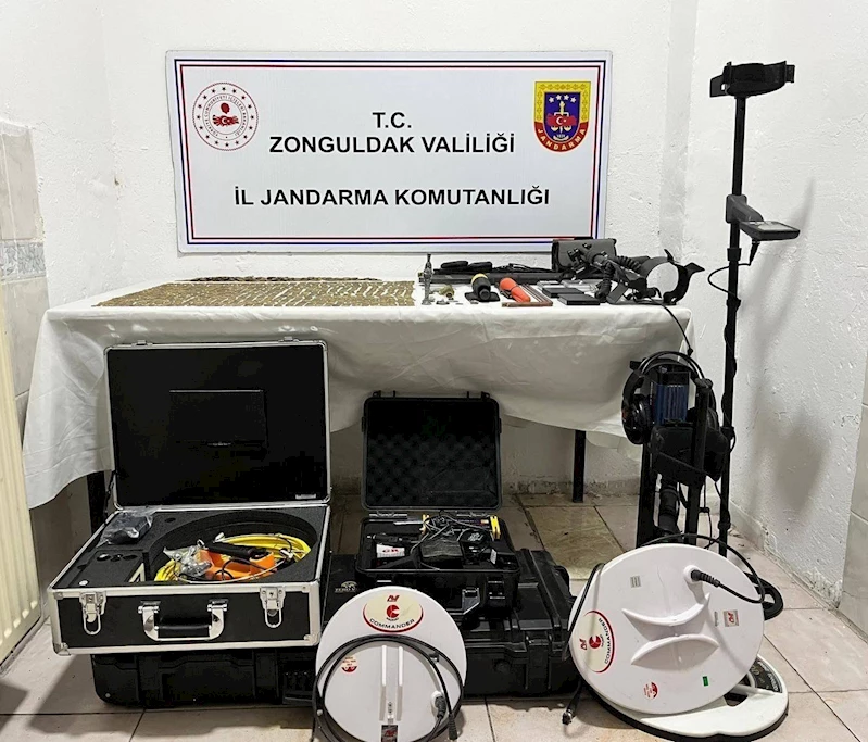 Jandarma ekiplerinin yaptığı operasyonda, adli makamlardan alınan arama kararı çerçevesinde A.K. ve E.K. isimli iki şüphelinin iş yeri, ikametgâh ve araçlarında arama yapıldı. Arama sonucunda bin 271 adet altın olduğu değerlendirilen sikke, 6 adet gümüş olduğu değerlendirilen sikke, 1 adet gümüş renkli heykel, 1 adet gümüş olduğu değerlendirilen kolye ucu, 1 adet gümüş olduğu değerlendirilen insan başlı aslan biblosu, 2 parça halinde değerli maden olabileceği değerlendirilen taş parçaları, 1 adet altın olduğu değerlendirilen taşlı yüzük, 12 adet 9X19 mm çapında tabanca fişeği, yılan kamera ve aparatları olduğu değerlendirilen cihaz, görüntü aktarma ekranı, 5 adet define arama dedektörü ve aparatları, 3 adet el dedektörü ve aparatları, 2 adet hassas terazi, 2 adet harici hard disk, 2 adet cep telefonu, 1 adet tablet bilgisayar ele geçirildi.
