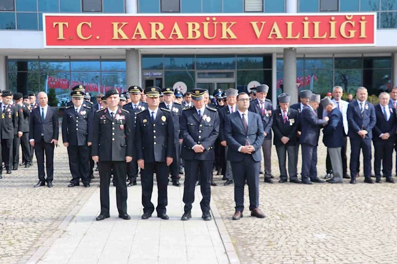 Karabük Valiliği bahçesinde başlayan törende İl Emniyet Müdürü Mehmet Ali Hasan Köse ve Karabük Polis Meslek Eğitim Merkezi Müdür Vekili Cem Yelep’in çelenk sunumunun ardından saygı duruşunda bulunuldu ve İstiklal Marşı okundu.