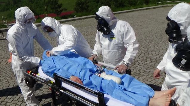 Ereğli Devlet hastanesi yönetimi sabah saat 10.00'da 'Hastane Afet Planı' çerçevesinde hastane bahçesinde 'Kimyasal Patlama' tatbikatı yapıldı. AFAD, UMKE, İlçe emniyet Müdürlüğü, itfaiye ve hastane çalışanlarının katıldığı tatbikatta, Organize sanayi bölgesinde faaliyet gösteren boya fabrikasında meydana gelen kimyasal patlamada yaralanan iki işçiye müdahale edildi. Patlamanın ardından olay yerine gelen Zonguldak İl Afet ve Acil durum müdürlüğü ekipleri (AFAD) özel elbiselerini giyerek çevrede kimyasal ölçümü yaptı. Olay yeri güvenlik altına alınarak, hazırlanan çadıra sedye ile yaralılar getirildi. Çadırın içerisinde yaralılar kimyasal etkilerden su ile arındırılarak ambulansa alındı. Olay yerine gelen yaralı yakınlarını ise Polis ve güvenlik görevlileri sakinleştirmeye çalışırken, hastaneye gelen yaralı yakınlarına Ereğli Devlet hastanesi görevlileri tarafından psikolojik destek verildi.