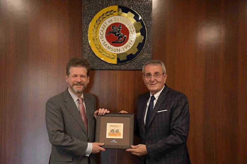 Kuzey Makedonya Ankara Büyükelçisi Jovan Manasijevski, Samsun Ticaret ve Sanayi Odası (TSO) Yönetim Kurulu Başkanı Salih Zeki Murzioğlu’nu ziyaret etti. Ziyarette karşılıklı olarak yatırım ve iş birliğini artırmak adına ortak bir çalışma yapılması kararı alındı.