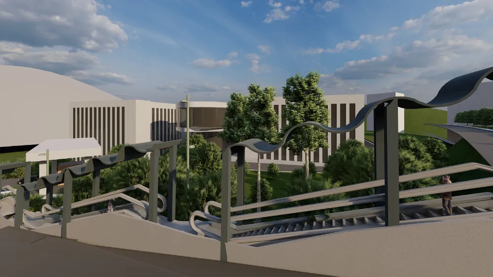 Hastane çıkışındaki dik bayırı vatandaşlarımızın rahatça çıkabilmeleri için buraya yürüyen merdiven yapıyoruz.