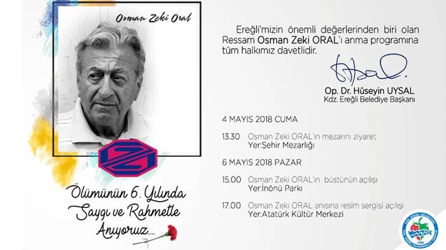 Zonguldak’ın Ereğli ilçesi Belediyesi tarafından 2012 yılında hayatını kaybeden ünlü ressam Osman Zeki Oral için anma etkinlikleri düzenleyeceği belirtildi.