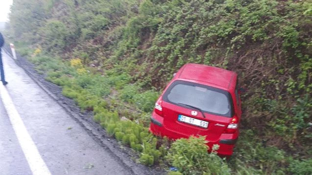 Edinilen bilgiye, Ereğli istikametinden Zonguldak istikametine seyreden Turan Dinçer idaresindeki 01 GT 591 plakalı araç, Bayat Köyü mevkiinde havanın yağışlı ve zeminin kaygan olması sebebiyle virajı alamayınca kontrolden çıkarak yolun kenarındaki kanala uçtu. Kazada araç sürücüsü ve eşi Güzin Dinçer hafif şekilde yaralandı.
