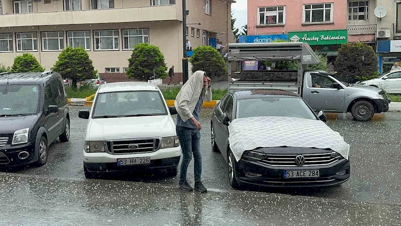 Rize’nin Pazar ilçesinde başlayan dolu yağışı hayatı olumsuz etkiledi.