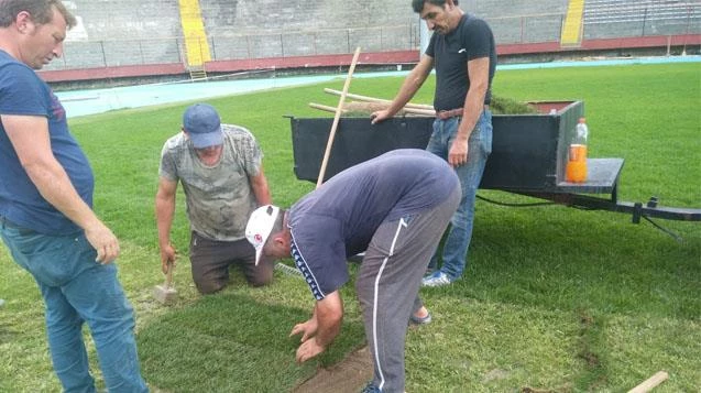 TFF 2.Lig takımı Zonguldak Kömürspor iç sahada maçlarına ev sahipliği yapan Karaelmas Kemal Köksal Stadyumunda çimlendirme çalışması devam ediyor.