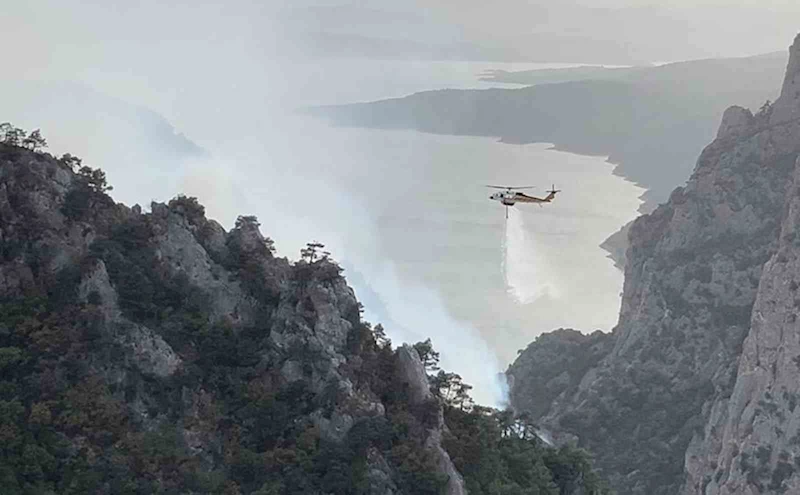 Şahinkaya Kanyonu’nda orman yangını: 1 helikopter ve 2 uçak havadan müdahale etti