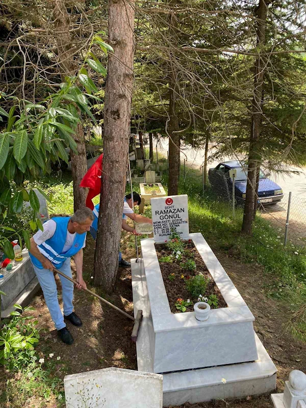 Gümüşova Kaymakamlığı bünyesinde Toplum Yararı Programı çerçevesinde çalışanlar şehit mezarlarını pırıl pırıl yaptı.
