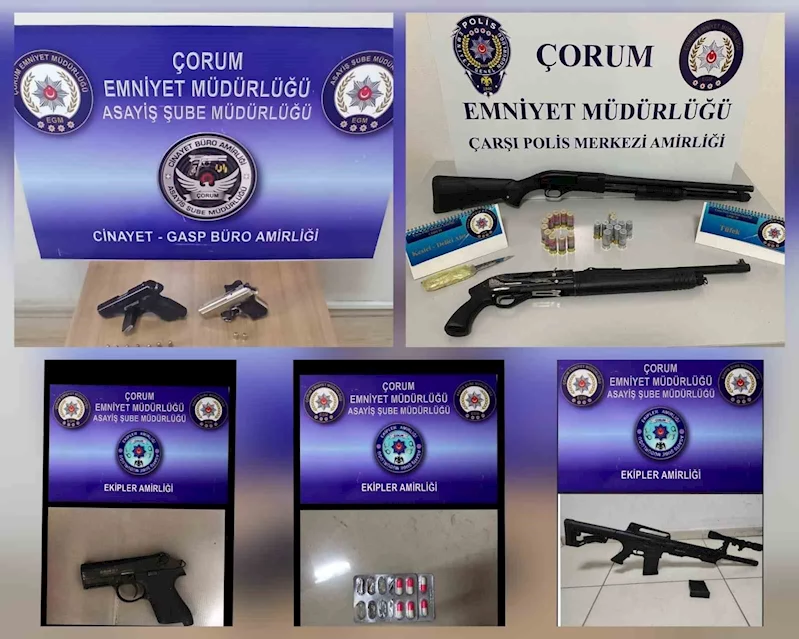 Çorum polisinin yaptığı şok uygulamalarda çok sayıda silah ve uyuşturucu madde ele geçirildi.