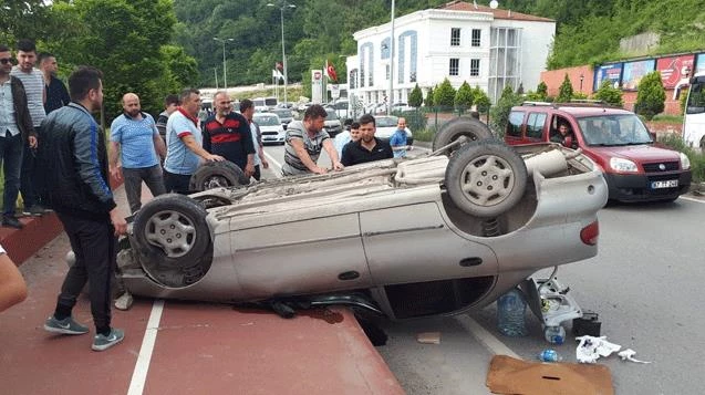 Edinilen bilgiye göre olay, akşamüzeri Kozlu Sahil Yolu'nda meydana geldi. Soner V. (25) idaresindeki 06 FR 4742 plaklı otomobille Zonguldak'tan Kozlu istikametine seyir halindeyken kontrolden çıktı. Kaldırıma çıkan otomobil çarpmanın etkisiyle takla atıp ters dönerek durabildi. Sürücü ise adeta hurdaya dönen otomobilin içerisinden burnu bile kanamadan çevredekilerin yardımıyla çıktı. Olay yerine sevk edilen sağlık ekipleri ise sürücünün yaralı olmadığını belirtmesi üzerine kaza yerinden ayrıldı. Polis ekipleri ise kaza yerinde geniş güvenlik önlemleri aldı. Kazaya karışan araç ise çekici ile olay yerinden kaldırıldı.