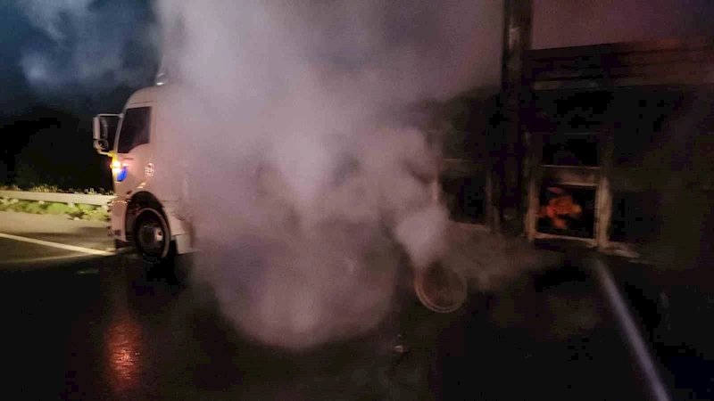 TEM Otoyolu’nun Bolu geçişinde seyir halindeyken dorse kısmı tutuşan kamyon yanarak küle döndü.