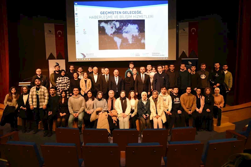 Düzce Üniversitesi Kariyer Geliştirme ve Mezun İzleme Uygulama Araştırma Merkezi tarafından düzenlenen “Geçmişten Geleceğe Uydu, Haberleşme ve Bilişim Hizmetleri” başlıklı konferansta TÜRKSAT A.Ş. Genel Müdürü Hasan Hüseyin Ertok Düzce Üniversitesi öğrencileriyle bir araya geldi.