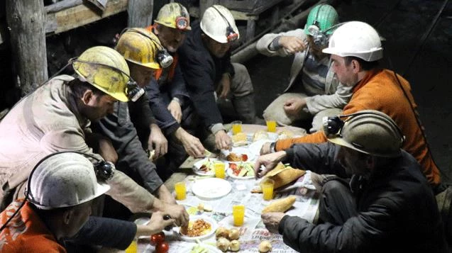 İşçiler, yemek sonrası yapılan duaların ardından kömür kazmaya devam etti.