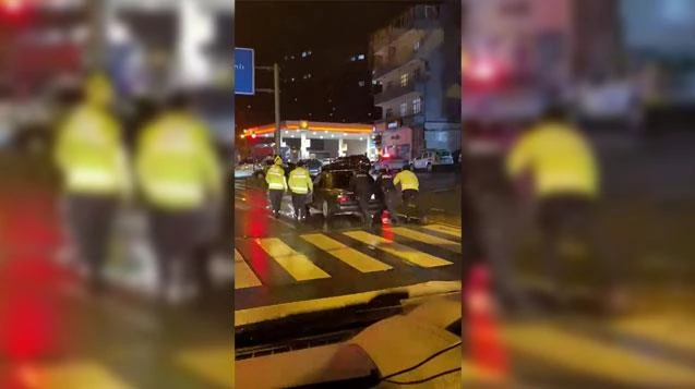 Otomobil, yoluna devam ederken bir vatandaş tarafından cep telefonu kamerasıyla kaydedilip sosyal medyada paylaşılan görüntü kısa sürede ilgi gördü.