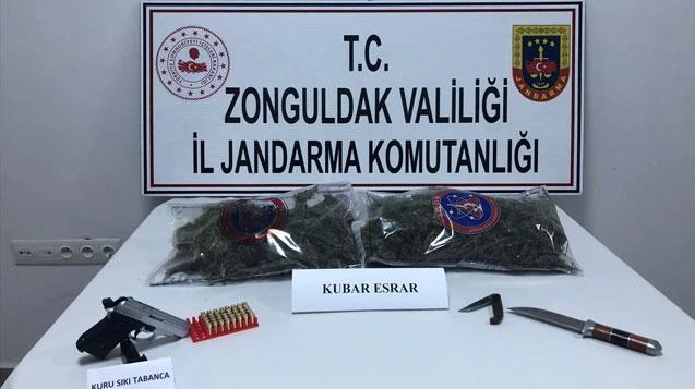 Edinilen bilgiye göre, İl Jandarma Komutanlığı KOM Şube Müdürlüğü ve Beycuma Jandarma Karakol Komutanlığınca Kaleoğlu Köyü'nde uyuşturucu ticareti yapıldığı tespit edildi. Daha önceden uyuşturucu madde ticareti yaptığı bilgisi alınan ve takibi yapılan M.T (51) isimli şahsın aracı durduruldu. Aracın anahtarını yolun dışına atarak kaçmaya çalışan M.T isimli şahıs yakalandı. Yapılan arama sonucunda araçta, 1 kg kubar esrar, 1 adet kurusıkı tabanca, 1 adet kurusıkı tabancaya ait şarjör, 40 adet kurusıkı tabancaya ait fişek, 1 adet kasatura ve 1 adet çakı ele geçirildi. Şüpheli M.T gözaltına alınarak jandarmadaki işlemlerinin ardından adliyeye sevk edilecek.