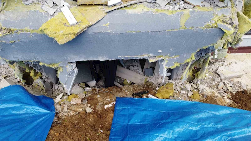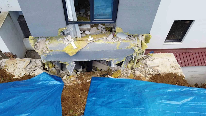 Ordu’da istinat duvarı çöken bina havadan görüntülendi